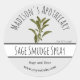 Customizable sage smudge spray bottle label. Featuring a sprig of sage on a light grey background, with modern typography. Perfect for home or apothecary, holistic business products.