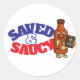 Adicione um toque de sabor aos seus pertences com este adesivo redondo "Salva e Saucy"! Apresentando uma garrafa alegre de molho quente segurando uma Bíblia, esta design divertida faz um sotaque perfeito para garrafas de água, laptop, notebooks ou embalagens de presentes. Durável e vibrante, é uma maneira brincalhona de mostrar que sua fé — e sua personalidade — vêm com um pouco de tempero extra.