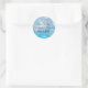 Um adesivo moderno apresenta um fundo azul. Personalize para suas necessidades.