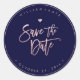 Adesivo Redondo Salvar a data, script Rosa Dourado, plano de fundo