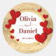 Adesivo Redondo Salve a data, Corações vermelhos personalizados