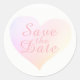 Adesivo Redondo salve a data no coração rosa pálido, casamento amo