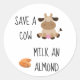 Adesivo Redondo Salve Uma Vaca Leite De Amêndoa Vegano