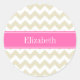Adesivo Redondo Sand Beige White Chevron Rosa Quente #2 Nome Monog