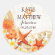 Adesivo Redondo Sand Seashells Floral Rustic Beach WedLabel