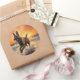 Adesivo Redondo Sandy Paws Cachorro Malinois Belga em Beach Sunset