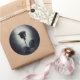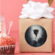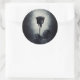 Um adesivo de casamento escuro e misterioso, com uma legal ilustração de um rosa preto no estilo gótico/émen com sangue vermelho pingando em suas pétalas. Um fundo preto de cor esbranquiçada no centro que destaca essa rosa macabra e modesta.
