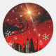 Adesivo Redondo Santa Claus Reindeer e Sleigh Voando