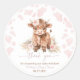 Highland Cow Santa Rosa Boca Rosa Boca Santa Menina Chá de fraldas de Vaca Boho Pampas Clássica Redonda E detalhes elegantes — perfeito para selar envelopes, decorar favores ou adicionar um doce toque à decoração da festa.