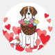 Adesivo Redondo Santo Bernard Cartoon com um Cesto de Corações