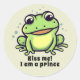 Um adesivo de desenho de sapo verde e bonito com a mensagem "Beije-me! Eu sou um príncipe"