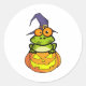 Adesivo Redondo Sapo Com Um Chapéu De Bruxa Na Abóbora