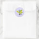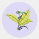 Um Sapo de Árvore Vermelha giro se senta sobre três folhas contra um pano de fundo roxo claro