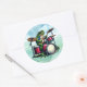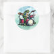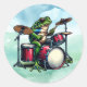 Adesivo Redondo Sapo de Cartoon Engraçado Tocando Tambores