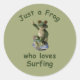 Surfar é um esporte incrível que pode ser apreciado por pessoas de todas as idades e esta camisa faz surfar parecer tão fácil, que você vai pensar que qualquer um pode fazer isso. Mas não seja enganado, você ainda precisa saber como surf para parecer que sabe como surf... Direita? Surfar não é apenas para atletas humanos. Este sapo engraçado está surfando, e ele não parece que vai parar tão cedo! Pegue este adesivo hoje e mostre seu amor por sapos e surfe!