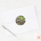 Uma fotografia de um sapo-leopardo sentado com uma pilha de paus.