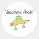Um sapo verde sorridente segura um lápis grande e o texto preto diz "Teachers Rock!" em Professores Rock T-shirts, canecas, mousepads, sacos de tota, cartas, adesivos, ímanes e muito mais!