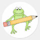 Um sapo verde com um grande lápis amarelo, um design excelente por qualquer tempo, diversão para professores ou estudantes personalizarem de volta para a escola T-shirts, mousepads, bolsas e muito mais!