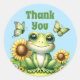 Crie seus próprios adesivos de design de texto Obrigado por um sapo de desenho animado fofo. Altere a cor de fundo para criar um design exclusivo. Um design de desenho de sapo verde giro a tempo para o mês nacional do Sapo. Você pode mover as borboletas. O sapo está sentado entre girassóis e margaridas.
