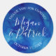 O círculo personalizado favorece etiquetas com um fundo de cor azul-abstrato para-aquarela para coordenar com a nossa coleção de ladeiras de apphire. Personalize-o com seus nomes e data de casamento ou adicione seu próprio texto personalizado. Use as ferramentas de design para alterar as fontes e as cores ou carregar suas próprias fotos para criar uma única design.