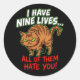 Adesivo Redondo Sarcastic Tabby Cat Nine Lives Hate You Funny