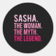 Adesivo Redondo Sasha The Woman The Myth The Legend Funny Valentin