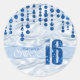 Este elegante adesivo dos Dezesseis apresenta um gigante faux-glitter '16' e uma fita sobre um fundo de efeito de cetim enfeitado com um padrão de joias suspensas. Adicione o nome de um celebrante usando o modelo fornecido. Procure ID260 para ver outros produtos com este design.