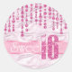 Este elegante adesivo dos Dezesseis apresenta um gigante, cor-de-rosa, falso-brilho '16' e fita sobre um fundo de efeito satírico adornado com um padrão de joias suspensas. Adicione o nome de um celebrante usando o modelo fornecido. Procure ID260 para ver outros produtos com este design.