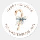 Adesivo Redondo Saudações de Férias de Cane de Açúcar em Aquarela