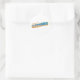 Um design retrô apresenta as palavras "Saudações do Offline" com uma cena de praia e oceano incorporada às letras.
