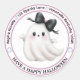 Saudações Fantásticas - Um Envelope de Surpresa Doce do Halloween Selo um fantasma alegre com um sorriso corajoso e um arco corajoso flutua no centro de um design circular enquadrado em rosa suave. Cercado por ícones fantasmas lúdicos e texto festivo, o layout irradia calor e timidez — perfeito para adicionar um toque pessoal às mensagens do Halloween ou à decoração sazonal. Cada detalhe é totalmente personalizável para corresponder ao seu estilo exclusivo e espírito assustador.