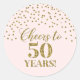 Anima-se a 50 anos de festa de aniversário a favor de etiquetas adesivas com rosa claro e confete de ouro.