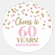 Anima-se a 60 anos de festa de aniversário a favor de etiquetas adesivas com o dourado e o confete cor-de-rosa.
