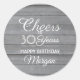 Adicione um toque personalizado de acabamento aos convites de aniversário e favores com estes adesivos de madeira redondos de cinza/selos de envelope. A design apresenta a caligrafia moderna de escrita editável "Saúde a 30 Anos" em uma madeira de cinza rústica. Esta modelo é montada para uma celebração de aniversário de 30 anos, mas é simples de personalizar para um ano ou idade diferente. Feliz aniversário!