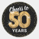 Elegante adesivos de cinquenta anos com fundo preto de na moda que pode ser mudado para qualquer cor, brilho brilhante de ouro e o ditado "cinquenta anos" usando cinquenta balões de hélio de ouro.