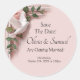Adesivo Redondo Save The Date - Pink Roses & Doves Wedding