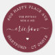 Modelo de etiqueta de endereço simples, elegante, redondo de casamento ou de retorno de noivado com tipografia branca em fundo de burgundy profundo. A cor de fundo é selecionável livremente no nível de design. Estas etiquetas de endereços na moda, fáceis de personalizar, contêm o texto "A futura senhora e o senhor", o endereço do casal, o nome numa fonte moderna de caligrafia com espirais, e um pequeno símbolo cardíaco. Entre em contato comigo se precisar de assistência ou de produtos adequados © y.BEE WEDDINGS