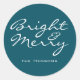 Adesivo Redondo Script Brilhante e Feliz Azul Nome Verde Natal