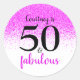 "50 e fabuloso." Orgulha-te, regozija-te e lança-te em 50 com estilo! Este adesivo cômico, brincalhão, personalizado, cor-de-rosa, de confete redondo ajudará a fazer dela uma festa para se lembrar. Estão igualmente disponíveis convites, envelopes, etiquetas, guardanapos de papel, placas de papel, canecas e outros artigos. Faz um excelente extra às festividades! Basta digitar o nome da aniversariante (e mudar de idade, se desejado) e você pode personalizar facilmente este adesivo redondo. Por favor, me mande mensagens com quaisquer perguntas ou solicitações.