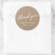 Adesivo Redondo de Script de Caligrafia Elegante Moderna Casamento Kraft