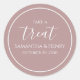 Um simples rótulo adesivo de agradecimento com uma escrita caligráfica de casamento, uma escrita caligráfica de casamento em tom de blush escuro, um modelo minimalista de "pegue um presente", um rótulo adesivo criativo para festa, um bufê de doces barra de biscoito fofo, um simples círculo minimalista, um personalizado caprichoso e sofisticado, rótulos criativos e elegantes, uma recepção simples e limpa, suprimentos para festa de recepção de casamento, para decoração de recepção de casamento com tipografia de texto branco.