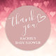 Um adesivo de agradecimento de chá de bebê minimalista moderno personalizado com seu nome, apresentando um coração desenhado à mão e tipografia estilosa em um fundo rosa dusty rose. Criado por Thisisnotme©