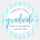 Anuncie ao mundo que seu formando favorito alcançou seu marco sempre que você usa esse obrigado incrivelmente festivo, moderno, feminino, personalizado que você escolhe. Espetacular, azul azul-turquesa azul-turquesa, escrita à mão, pontos confetti e tipografia de cinza mole sobrepõem um fundo azul-turquesa claro e um fundo listrado branco. Personalize o texto personalizado com o nome e o ano de classe do seu formando. Escolha entre uma forma redonda ou quadrada, em 2 tamanhos. Convites de correspondência e coordenação, obrigado cartas, bonés, ventiladores, guardanapos, placas, banners, placas de jardim e outros arranjos de graduação também estão disponíveis nesta coleção de tendências e na moda. Garantido para adicionar diversão na moda à sua ocasião especial! Basta digitar o nome e o ano de aula do seu formando, e você pode personalizar facilmente este adesivo de graduação. Por favor, me mande mensagens com quaisquer perguntas ou solicitações.