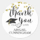 Utilize esta formatura festiva e elegante OBRIGADO VOCÊ adesivos com um script de caligrafia moderno tipografia, boné de formatura e confete dourado personalizado com seu nome de formando e ano como obrigado de graduação você encapsula ou favorece adesivos. ASSISTÊNCIA: Para obter ajuda com a modificação ou personalização do design, alteração de cor, redimensionamento, transferência do design para outro produto ou, se você quiser coordenar itens, entre em contato com o designer ANTES DE ENCOMENDAR através da guia MENSAGEM de bate-papo Zazzle ou envie um email para makeitaboutyoustore@gmail.com.