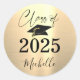 O moderno falso esfregaço de ouro metálico e o invólucro preto de papelaria de graduação selam ou adesivos de favores com um guião manuscrito de chic CLASS OF e um ano editável com um boné de formatura preto ou um conselho de morteiro ou de argamassa e o nome do seu formando. Adicione a convites de graduação, anúncios e cartões de obrigado ou use para obrigado festa de formatura - você favorece adesivos. ASSISTÊNCIA: para obter ajuda com a modificação/personalização do design, alteração de cor, transferência do design para outro produto ou, se você quiser coordenar itens, entre em contato com o designer ANTES DE ENCOMENDAR através da guia MENSAGEM de bate-papo Zazzle ou por e-mail em makeitaboutyoustore@gmail.com.
