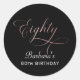 Adesivo Redondo Script Dourado Rosa de Festa de aniversário 80