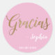 Adesivo Redondo Script Gracias Douradas e Rosa Personalizado