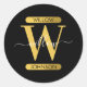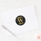 Adesivo Redondo Script Moderno do Monograma Dourado e Preto Elegan