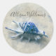Adesivo Redondo Script Moderno Monograma Costeiro de Seashell Azul