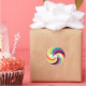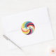 Arte retrógrada abstrato, manivela colorida, espiral arco-íris personalizada adesivo de casamento com noiva e noiva modelo. Paleta de cores azul-rosa amarela. Este produto é facilmente editável. Se precisar de ajuda para a personalização deste produto ou se precisar de mais produtos correspondentes para esta coleção, envie-me gentilmente o Zazzle.